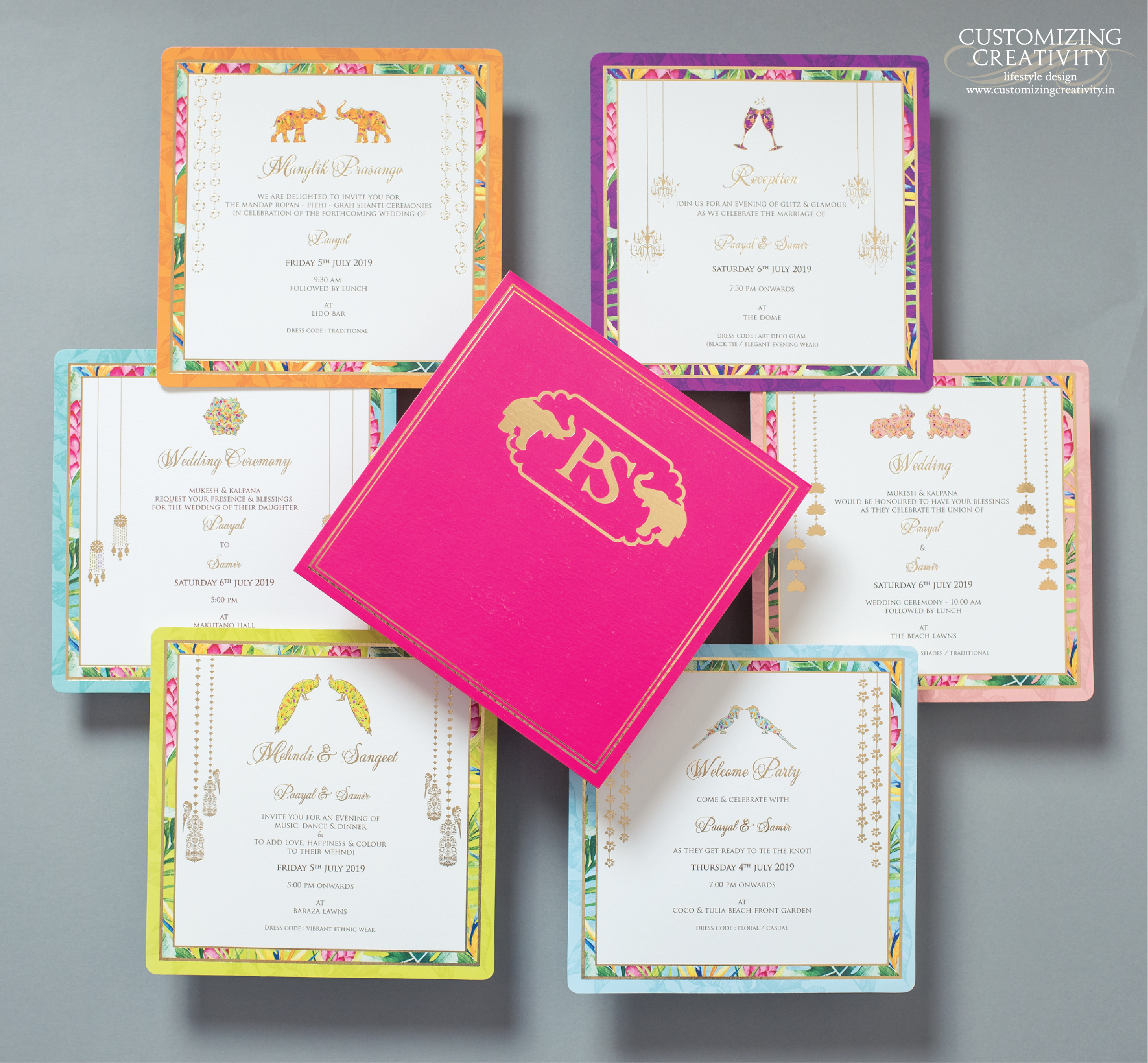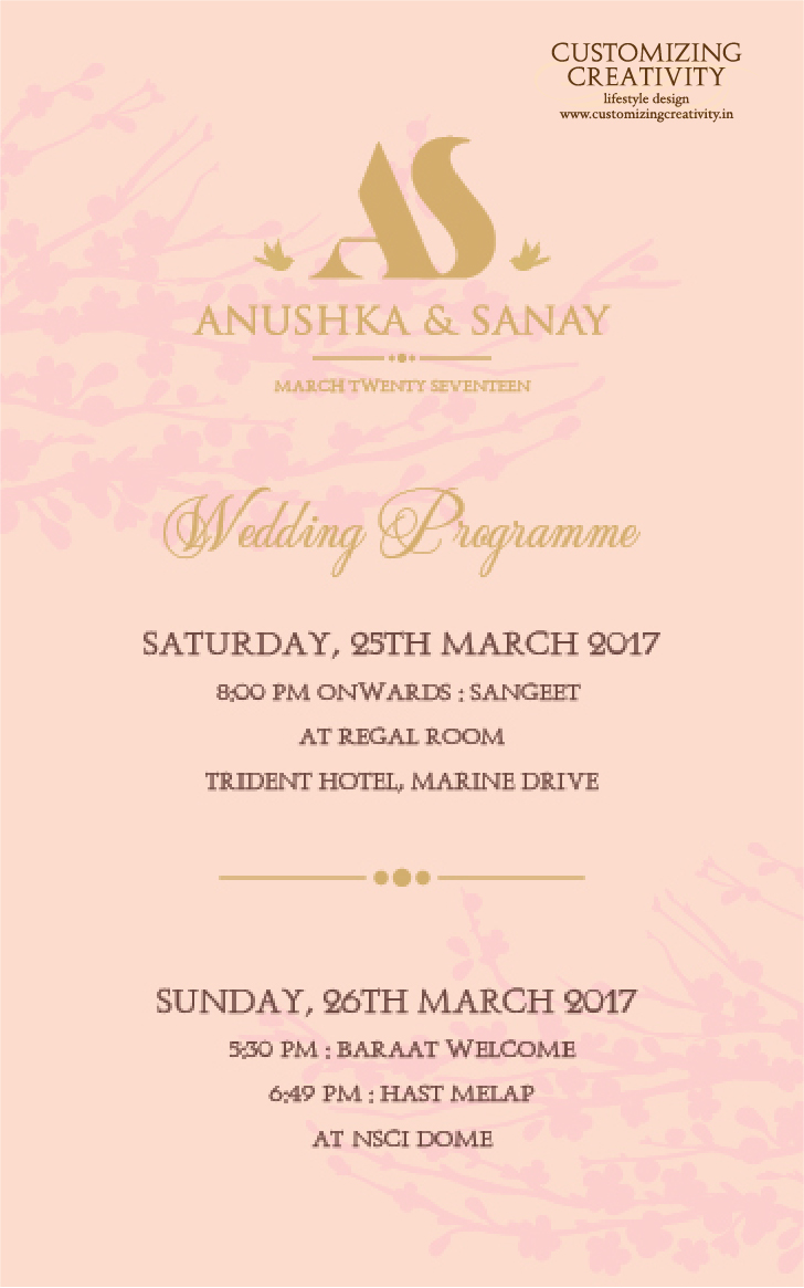 We highly recommend, that closer to your functions you should send out a reminder of sorts ( the same look & feel of the overall design should continue) or a brief letter about some vital information on the weather, to-do’s, accommodation, etc. that may not have been included in the main invitation card.