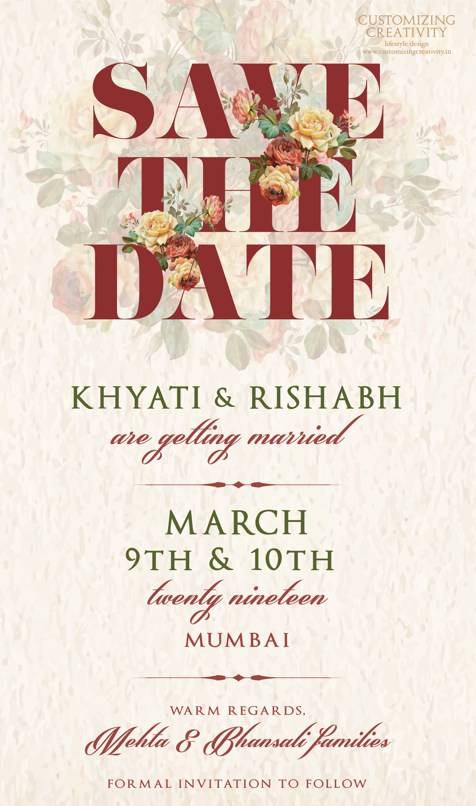 As soon as you have decided the right invitation designer for you, begin working on the Save the Date or the Wedding monogram / logo if you need it.