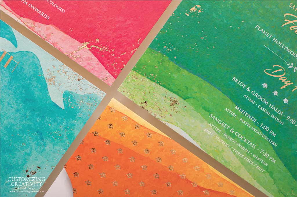 There are many more printing methods like laser cutting, electro-plating, UV printing, etc., but the ones discussed above are most popular with our brides & grooms!