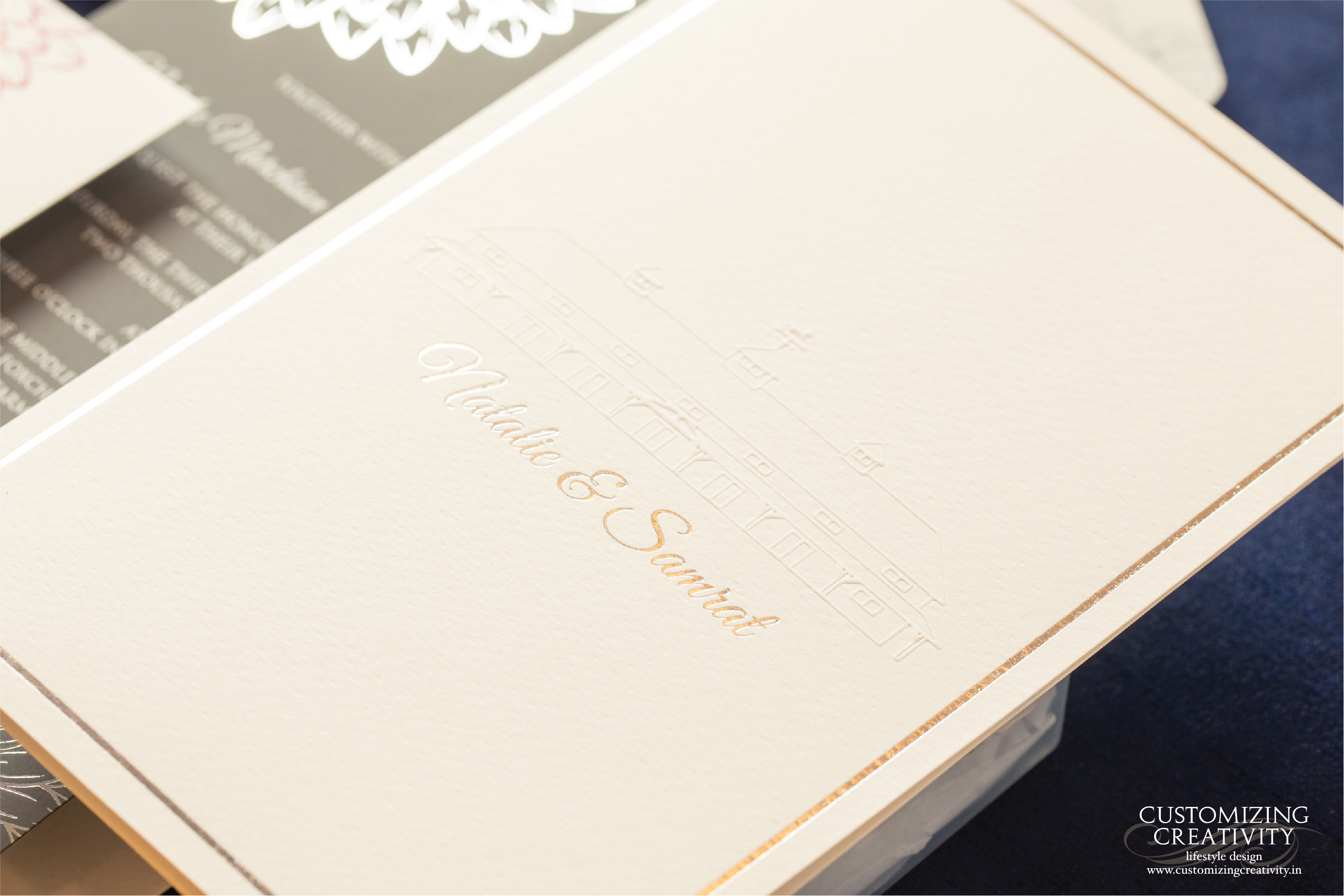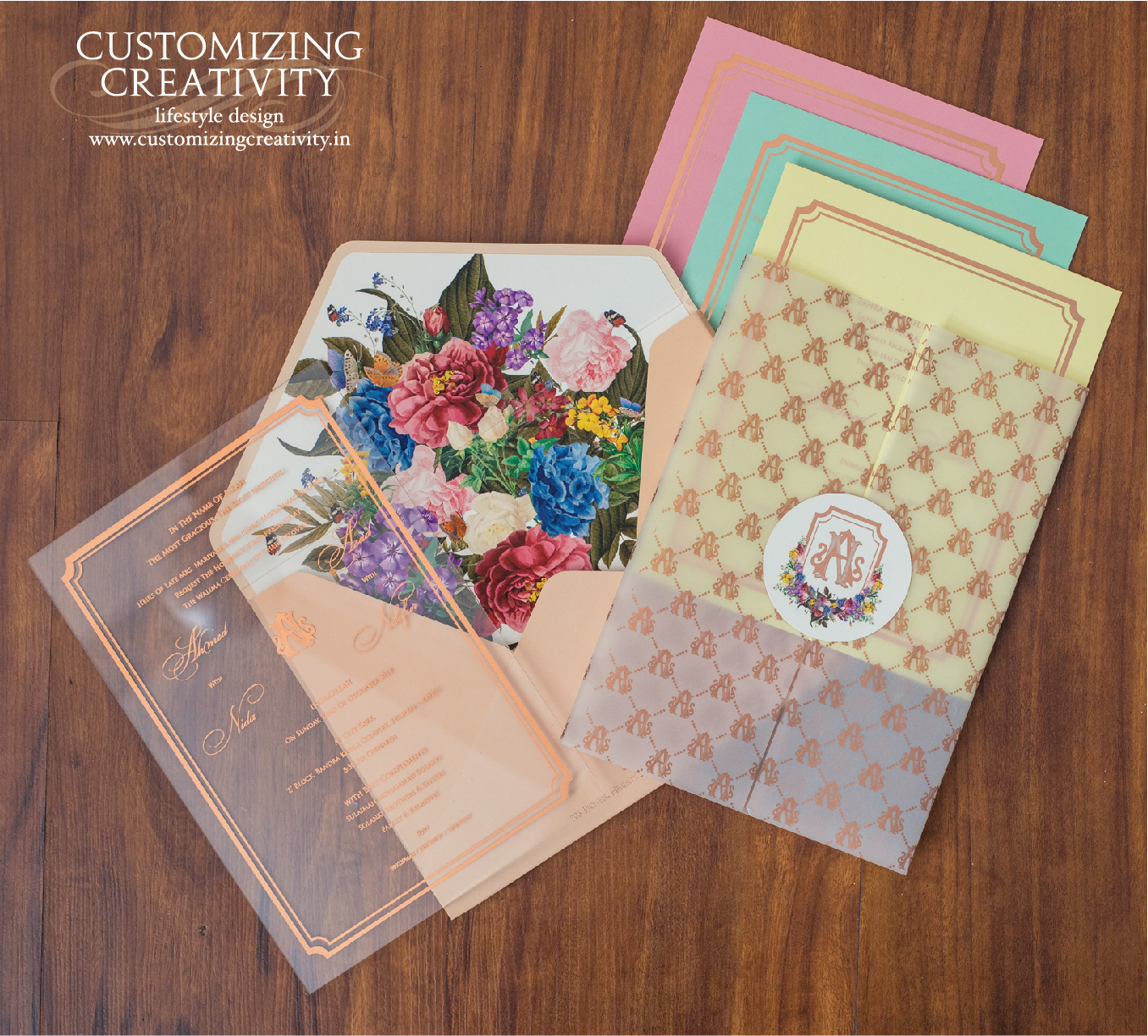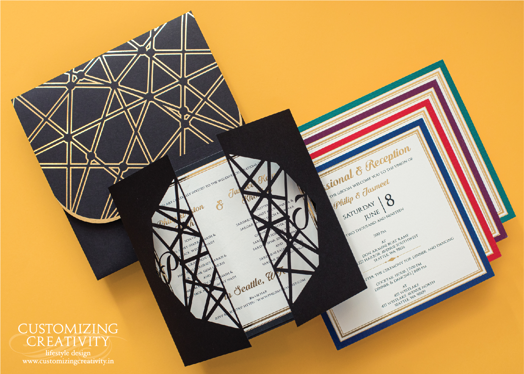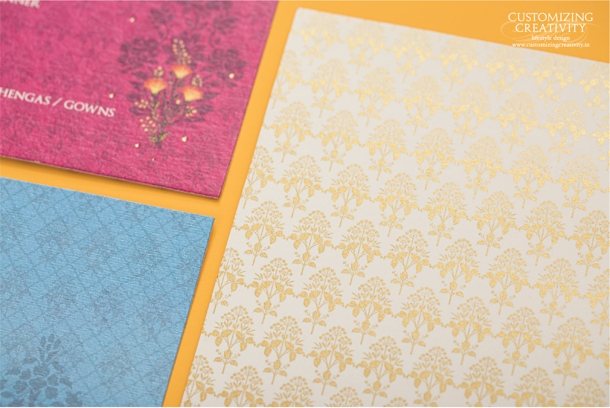 For example : An invitation with foiling is likely to cost much lesser than one which has a detailed laser cut design.